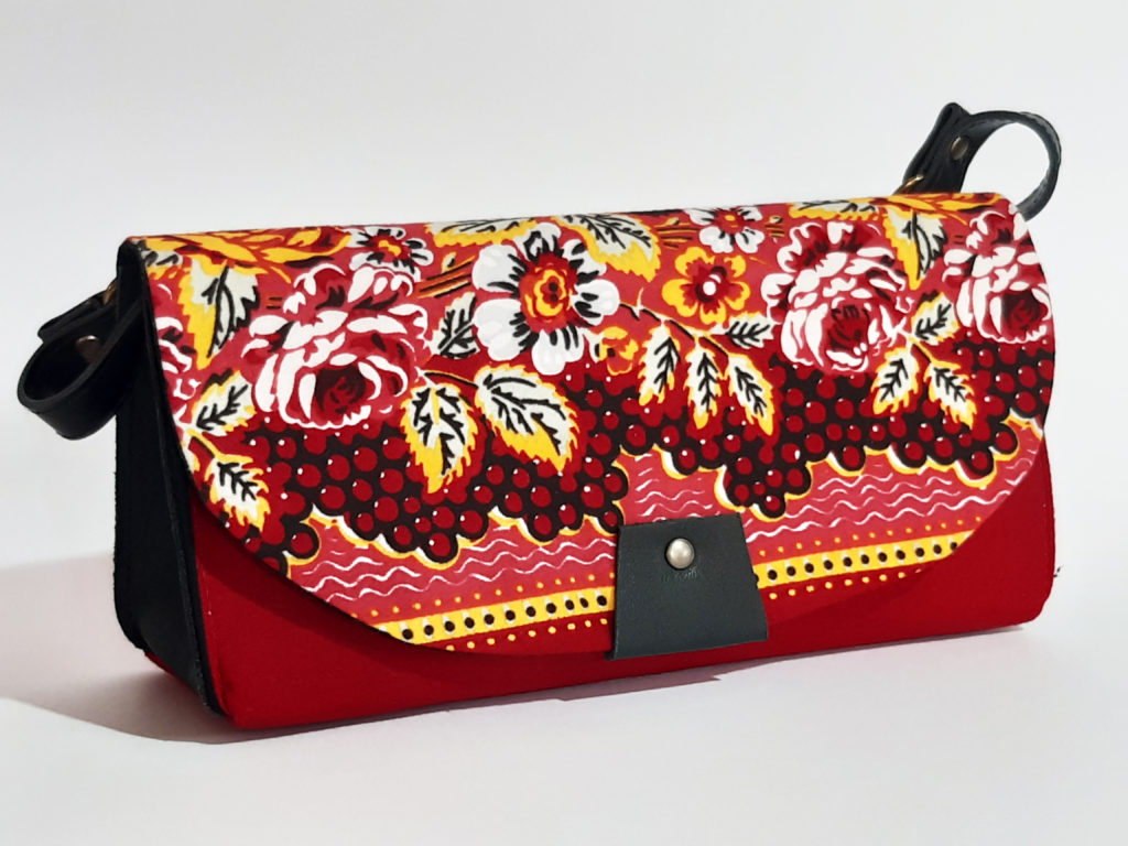 rozměry: šířka – 22 cm, výška – 11 cm, hloubka – 8 cm; popruh – koženka/délka 127 cm